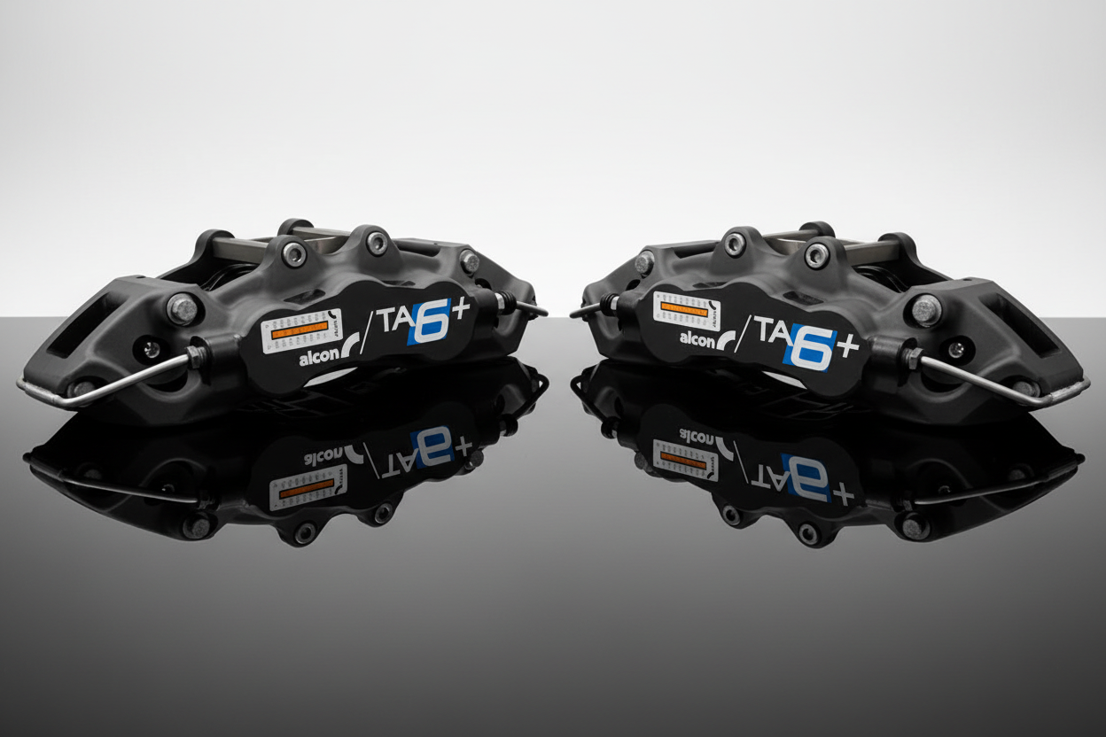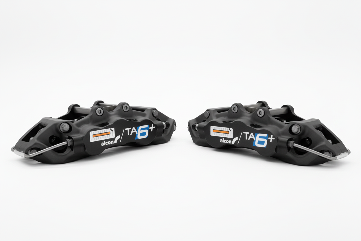 The Alcon TA6+ six-piston trailing caliper delivers track-proven stopping power with street-legal high-temperature dust seals. Engineered for drivers who demand both circuit capability and daily usability, this caliper features triple differential bore sizing (27.0mm, 31.8mm, 38.1mm) in a precision-machined billet aluminum construction. The TA6+ bridges the gap between dedicated race hardware and practical road use without compromise.