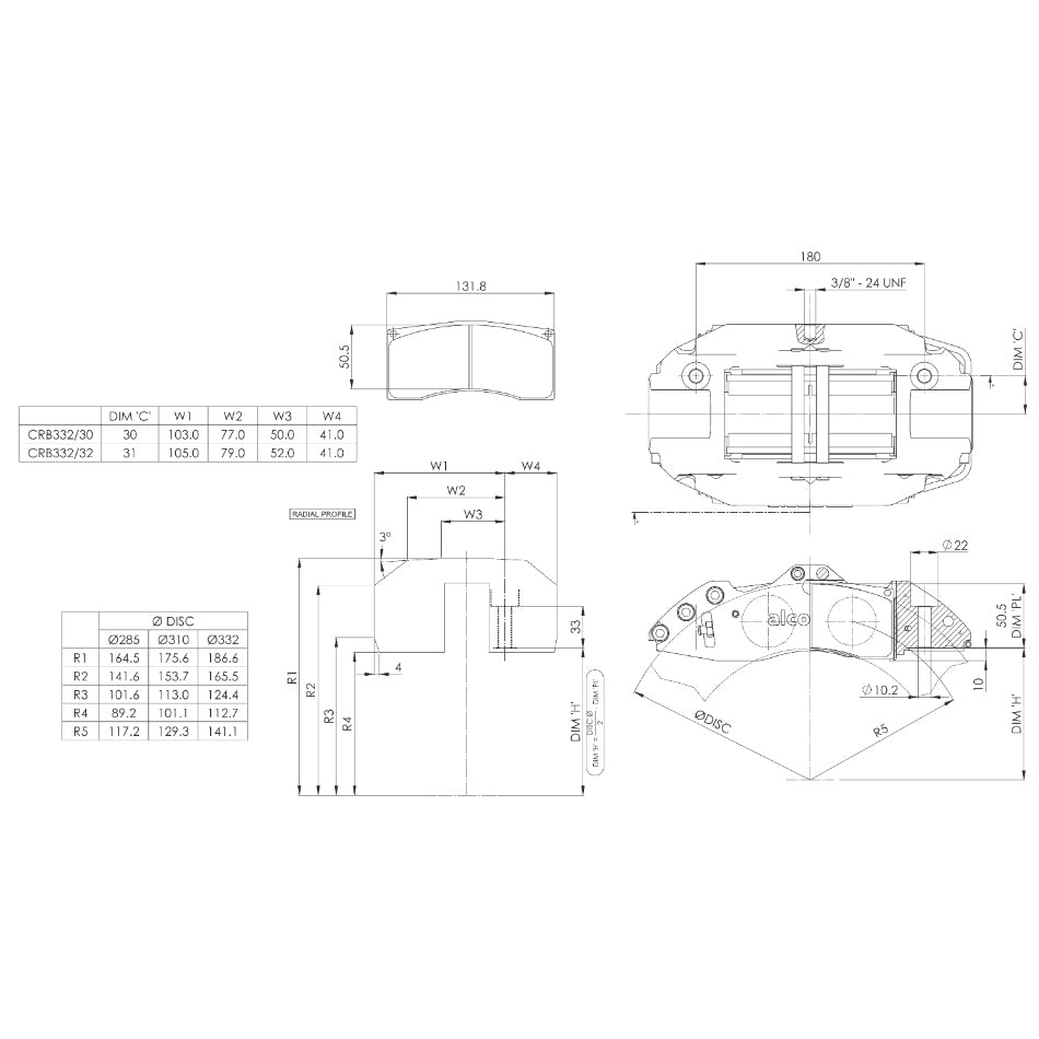 - Disc thickness: CRB332/30; 26 - 30mm, CRB332/32; 28 - 32mm.