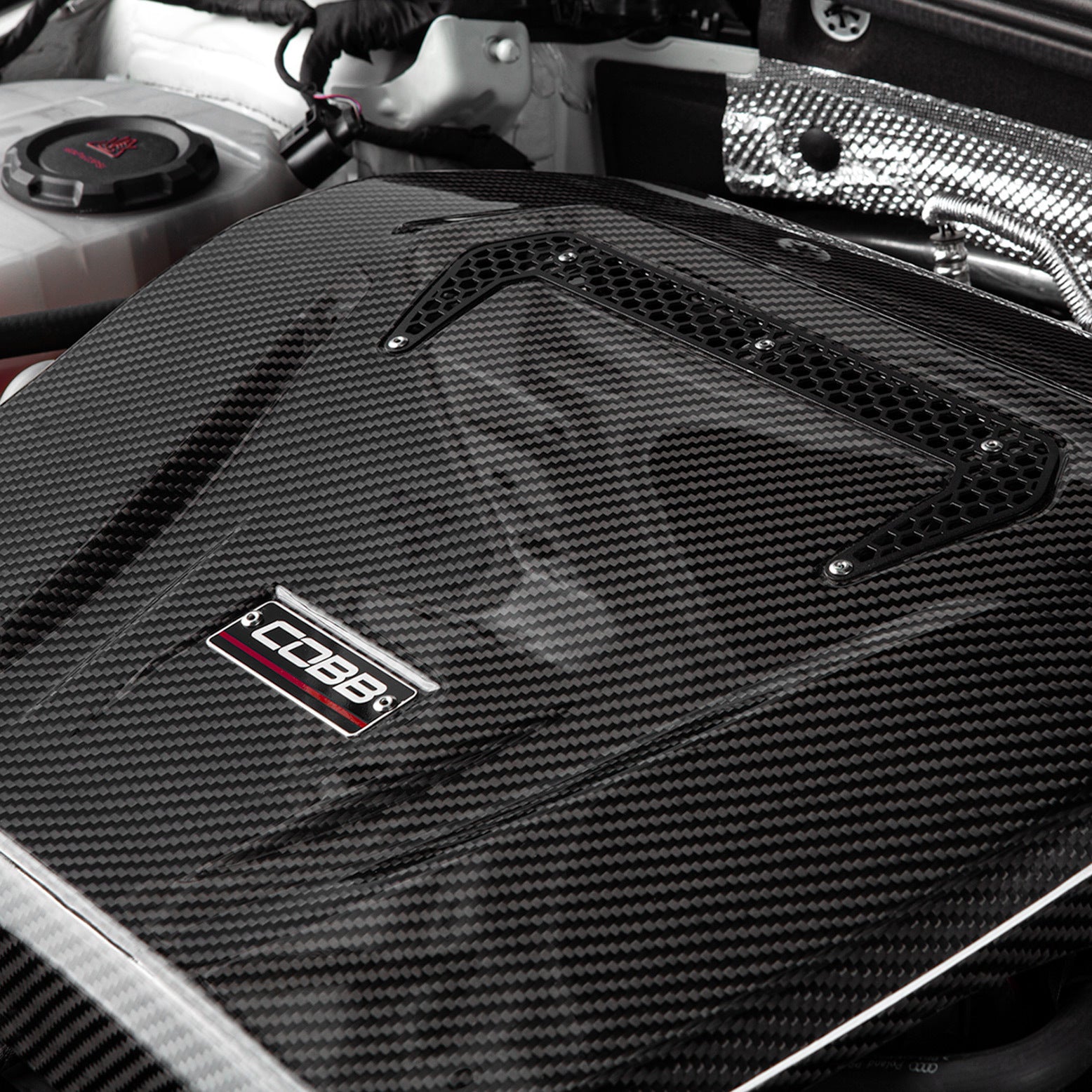 The COBB Redline Carbon Fiber Engine bay for the Audi / Volkswagen A3, S3, GTI, Golf R is constructed of solid carbon fiber featuring a 2x2 twill weave pattern. It is finished in a durable, high quality gloss finish coat and is marked using our bespoke Redline badging. Satin black powder coated aluminum brackets make installation a breeze and hold the cover sturdy. Included black button-head hardware and COBB nylon washers preserve the carbon finish while holding the cover in place.