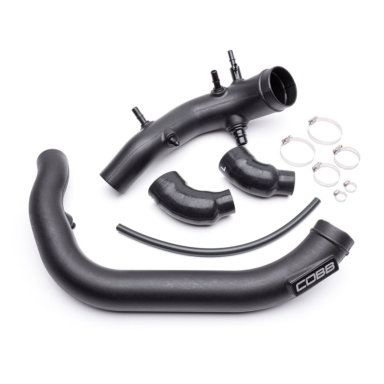 This one of a kind product provides a 222% increase in cross sectional area at the power robbing bottleneck near the turbo inlets. Constructed of molded ABS plastic and given a textured finish, these look right at home on an otherwise stock truck or with COBB Intake System. Not only does the increased diameter reduce pre-turbo restrictions and significantly improve pressure drop at the turbo inlets, it also balances pressure across the two banks.