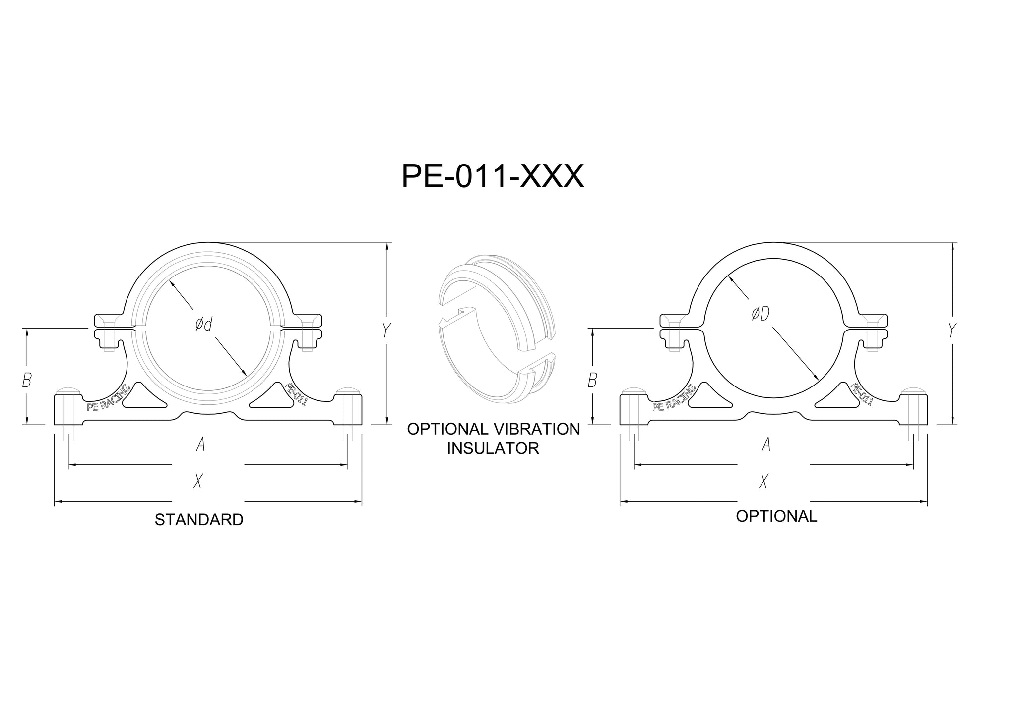 PE clamps come in four different styles and a variety of sizes to satisfy a wide range of tube mounting needs. Engineered to withstand a 10G dynamic load of 5 kg or a static load of 50 kg per clamp. The clamps have an optional vibration insulator that dampens vibration effects (NOTE: Adding the vibration insulator makes the clamp suit the next size down, except for this PE-11 range which is designed to always come with the vibration insulator). They are made of aircraft alloy with a hard anodised finish to resist the effects of harsh environments.