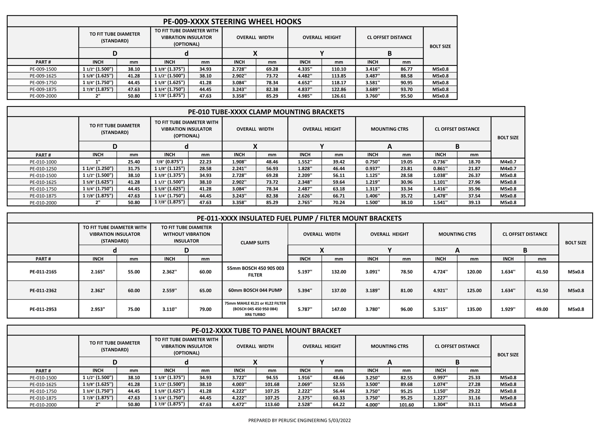 PE Fuel/Filter mounting brackets are designed to fit Bosch and Mahle products.