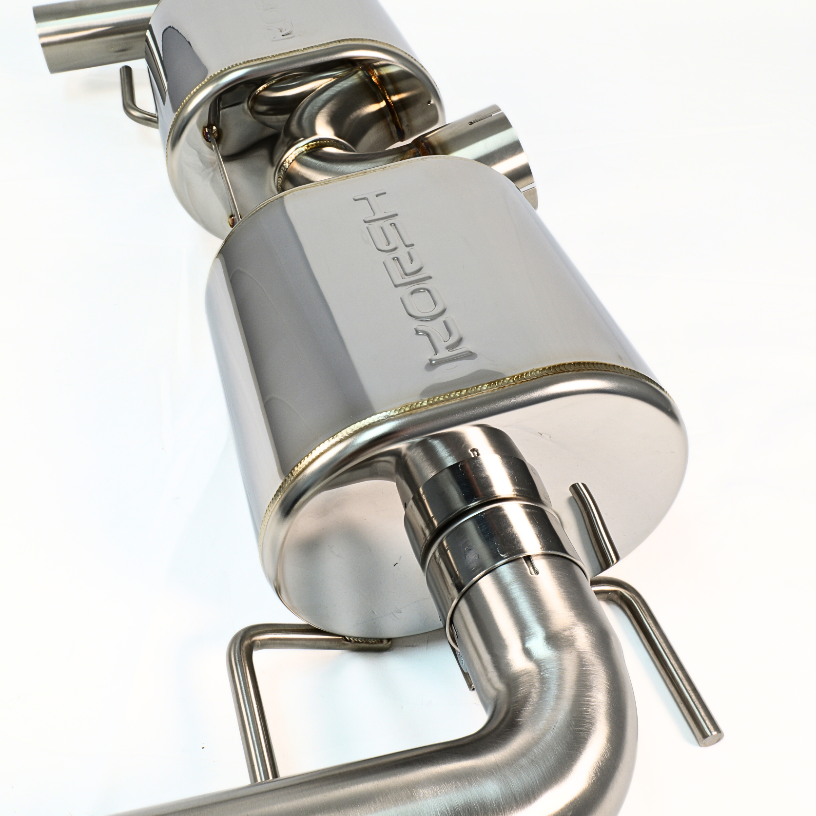 - Configuration: Cat-back system with dual titanium-finish outlets