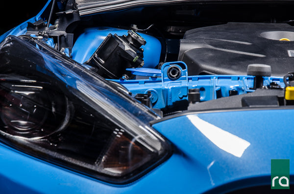 This kit is for the 2013+ Ford Focus ST and Ford Focus RS. It is designed to replace the plastic coolant tank found at the front right of the engine bay. It maintains the same function as the OEM coolant tank while providing an additional 160mL of fluid volume.