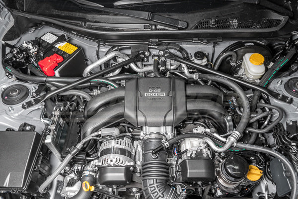 The catch cans are strategically located for compatibility with Right Hand Drive (RHD) and Left Hand Drive (LHD) variations. Minor brake line clearancing is necessary on RHD installations. Both kits are compatible with all current aftermarket forced induction kits. For mounting, the kits use factory bosses and holes on the chassis. No cutting, drilling or permanent modification to the vehicle are required.