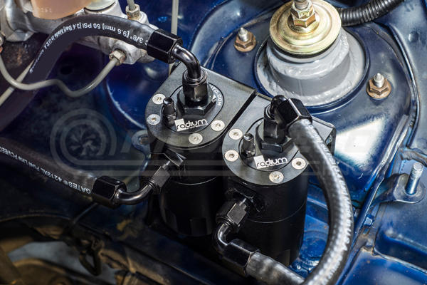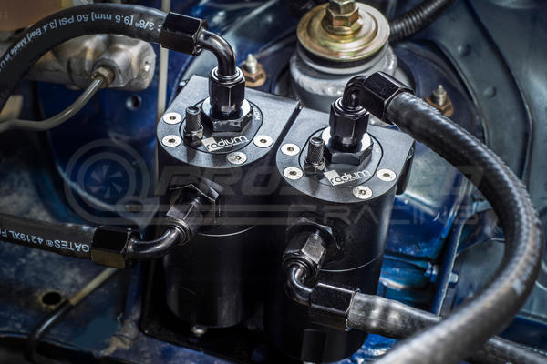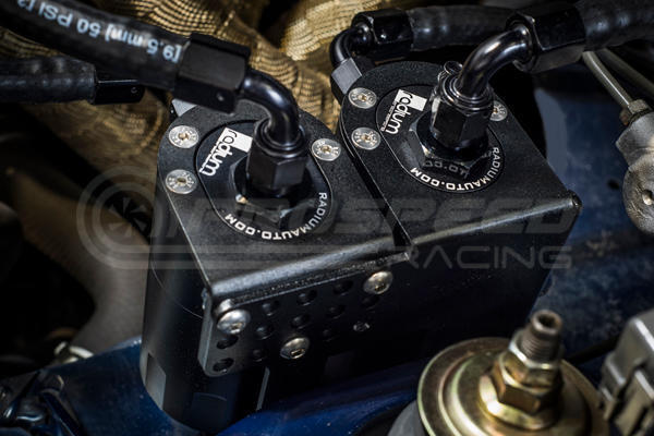 An oil catch can is essential on a performance vehicle to protect the engine from elevated levels of crankcase blow-by accumulated from high performance driving. Excess oil saturated air circulating back into the air intake stream can lead to degraded performance. Radium Engineering catch cans feature large 10AN ORB ports, a 4AN ORB drain port, 2-step oil separation baffling, and an O-ring sealed dipstick.