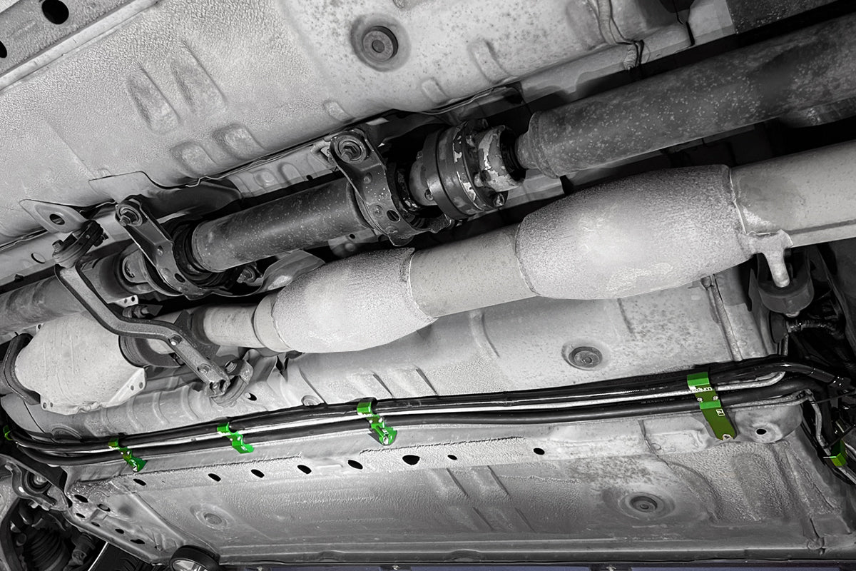 - Long 8AN PTFE fuel line - runs from rear to engine bay