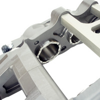 - Monobloc piston design for high stiffness (firm pedal) with low weight.