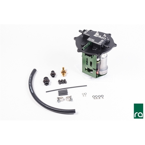 The Radium fuel pump hanger for late model Subaru vehicles replaces the OEM unit and allows the use of 1 or 2 high-flow aftermarket fuel pumps. The system is safe to use with alternative fuels such as E85. The machined assembly mounts in the factory fuel tank using the OEM gasket and replaces the OEM hold-down flange. No permanent modifications are required making installation simple.