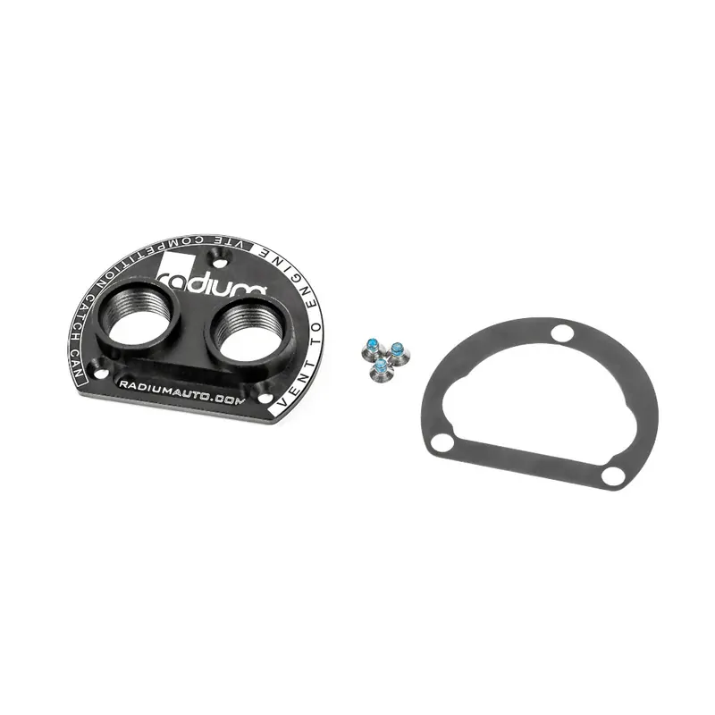 The Radium Engineering PCV valve (sold separately) flow direction must be towards the intake manifold (vacuum).